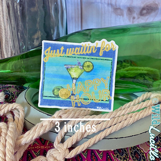Just Waitin' For Happy Hour - Vinyl Tumbler Decal