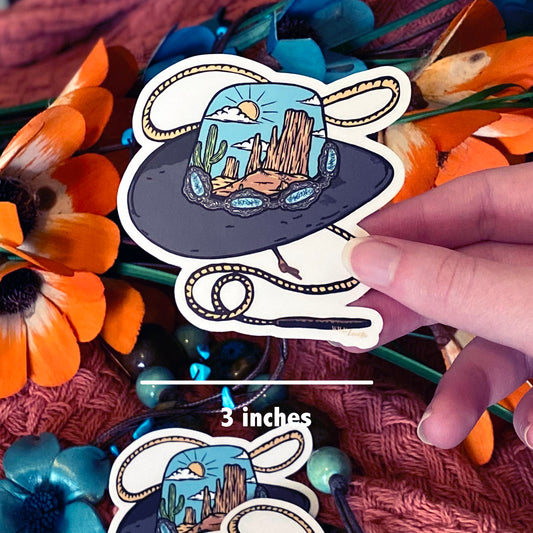 Desert Turquoise Cowboy Hat - Western Boho Vinyl Decal
